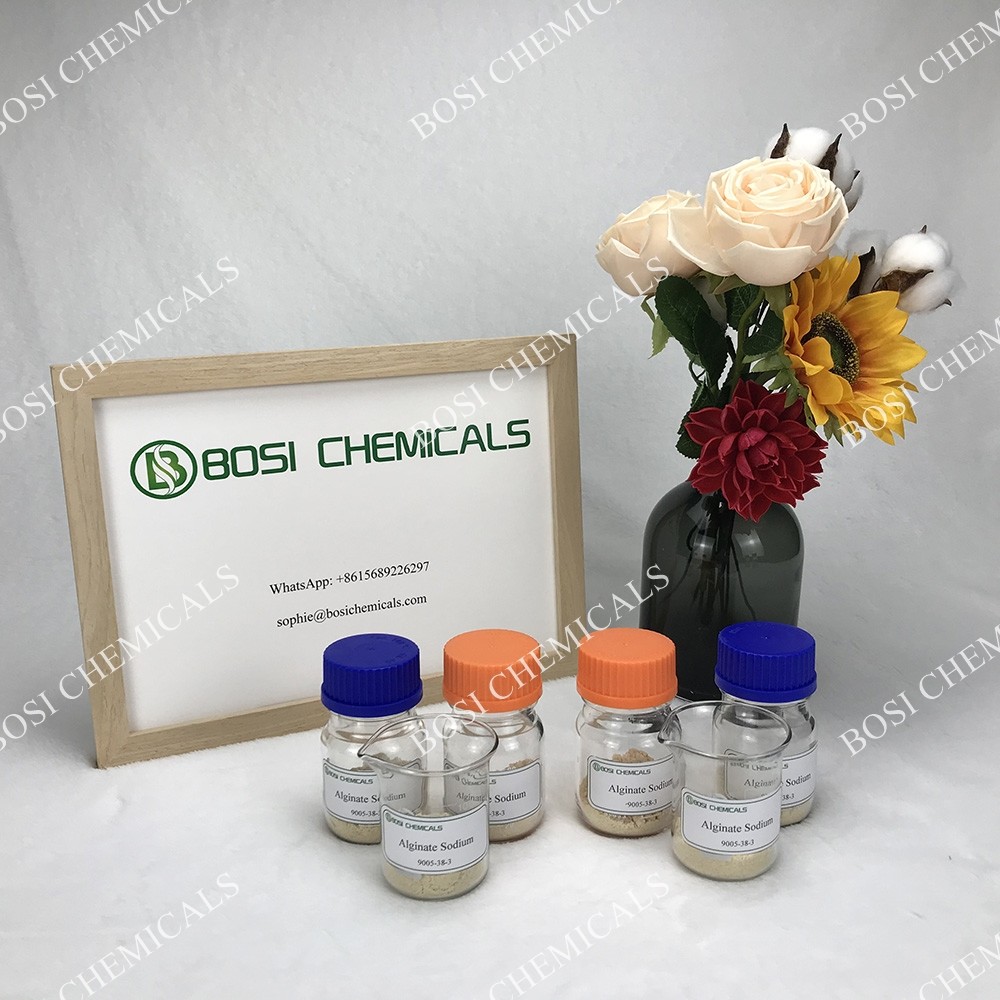 El alginato de sodio se usa como gel en preparaciones farmacéuticas.El alginato de sodio (E401) se extrae de algas pardas.También se utiliza como estabilizador, espesante y emulsionante para productos alimenticios como helados, yogures, cremas y quesos.Es un agente gelificante en frío que no necesita calor para gelificar.
